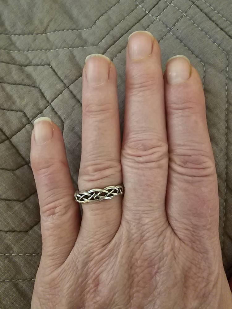 Every ring is handmade to order and in YOUR CUSTOM size; we do not keep backstock. Please buy our refundable ring sizer (BEFORE ORDERING) as most rings cannot be resized because of the continuous knotwork: www.etsy.com/listing/937178260