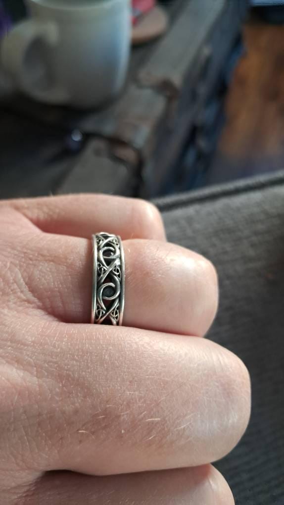 Every ring is handmade to order and in YOUR CUSTOM size; we do not keep backstock. Please buy our refundable ring sizer (BEFORE ORDERING) as most rings cannot be resized because of the continuous knotwork: www.etsy.com/listing/937178260