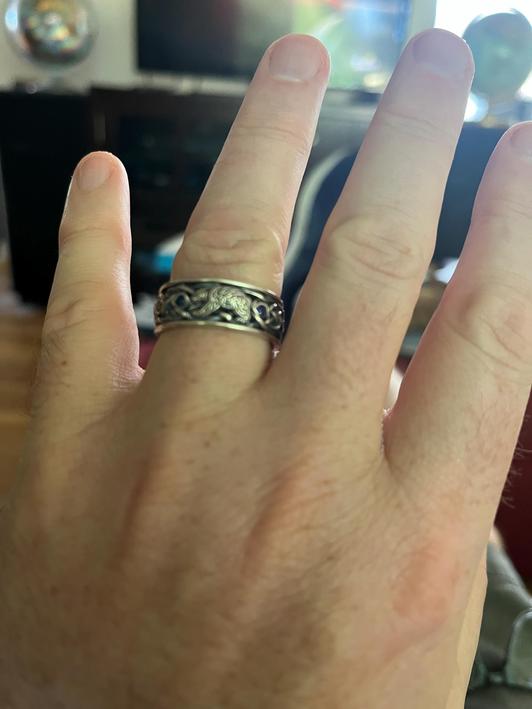 Every ring is handmade to order and in YOUR CUSTOM size; we do not keep backstock. Please buy our refundable ring sizer (BEFORE ORDERING) as most rings cannot be resized because of the continuous knotwork: www.etsy.com/listing/937178260