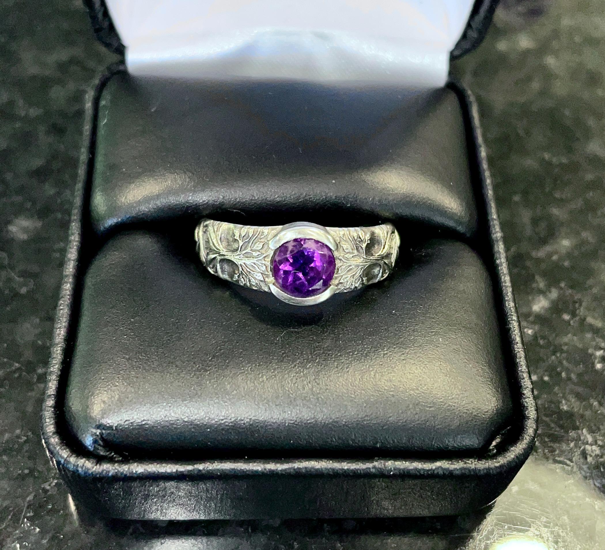 Patina is a method of darkening metal through oxidation. This allows small details to stand out and gives the ring a beautiful contrast. Almost all our photos use patina.