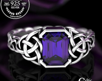 Sterling Minimalist Engagement Ring, Silver Celtic Moissanite Solitaire Ring, Sapphire Emerald Amethyst Classic Irish Wedding Ring, 1997