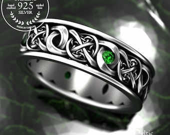 Emerald Silver Celtic Wedding Band, Celtic Wedding Ring, Sterling Silver Wedding Ring, Emerald Wedding Band, Sterling Eternity Ring, 1462
